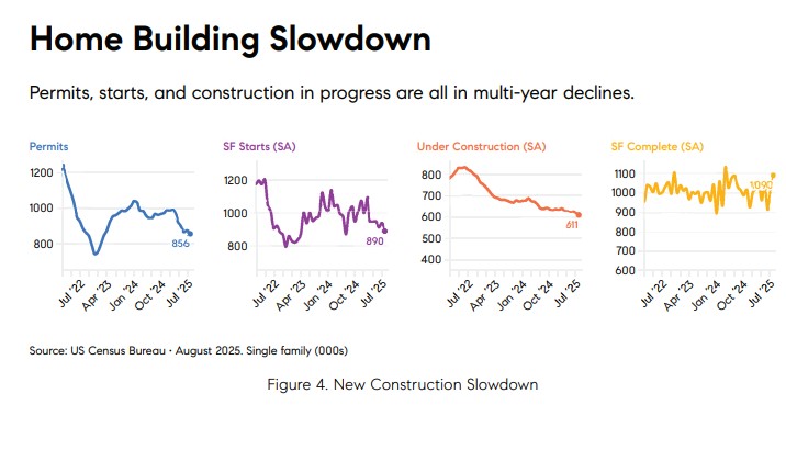 Downside risks remain. Hiring has slowed to recession-like levels, construction activity is down sharply from recent peaks, and consumer sentiment remains weak as costs stay elevated. These pressures matter, but housing downturns typically follow sustained job losses not hiring slowdowns.