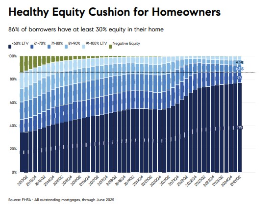 Homeowners enter this cycle with record equity, low delinquency rates, and conservative leverage—key reasons a housing collapse remains unlikely.